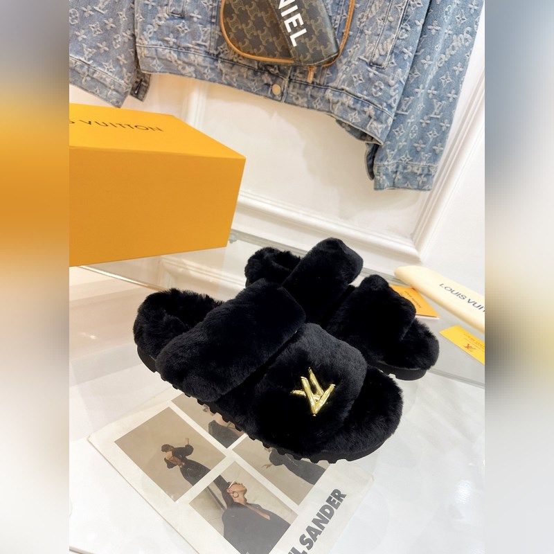 Louis Vuitton 2024 gyapjú papucs prémium minőségű puha gyapjúból és bőrből