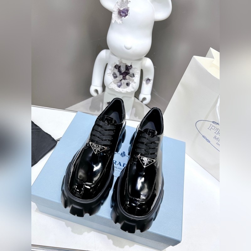 Prada legújabb fekete oldalra nyíló gyöngy borjúbőr vastagtalpú szabadidős cipők