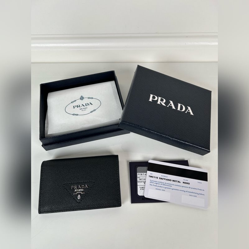 Prada 1MH042 Mini Pénztárca Fekete Saffiano 9×6,5cm Luxus Minőség