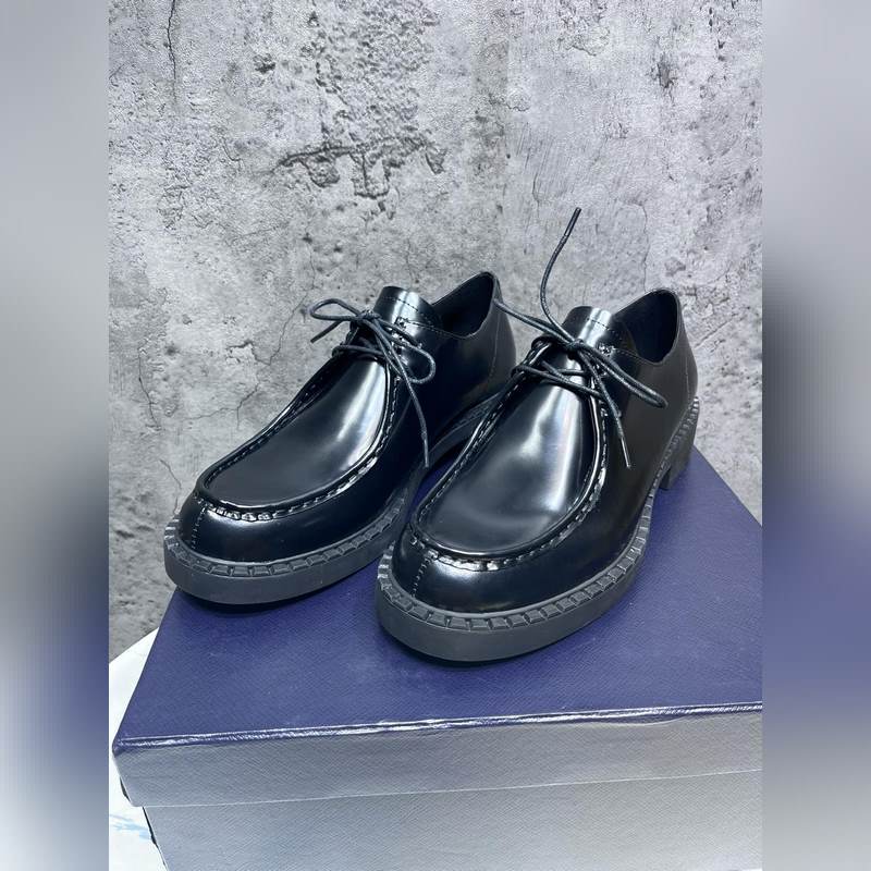 Prada Derby vastag talpú cipő Prémium Ken Fabric tehénbőr