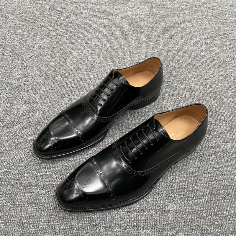 LV Klasszikus férfi oxfordi ruha cipő Mandula orrú Brogue minőségi bőr