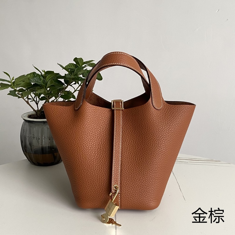 Picotin Basket 18cm TC marhabőr kézzel varrott teljes acél arany csat