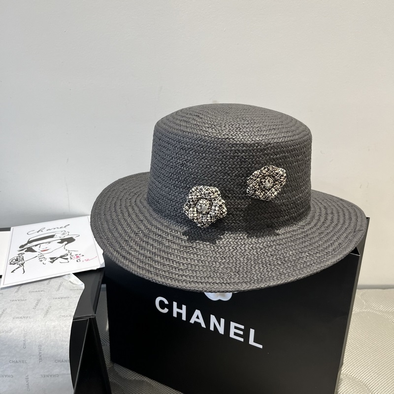 Chanel széles karimájú napfénykalap 57 cm, luxus szalmamintás