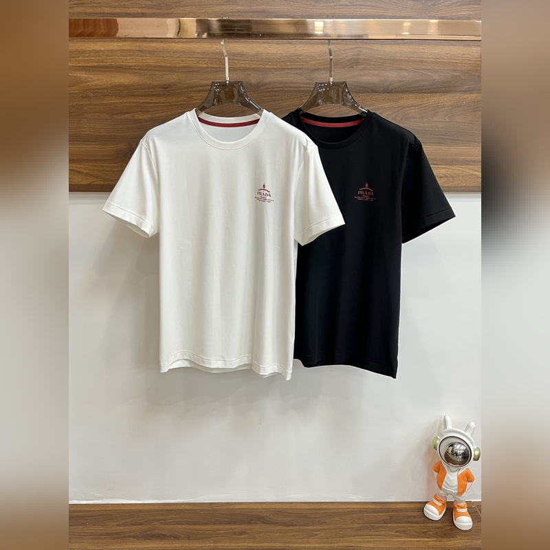 Prada 2025 SS kora tavaszi új kerek nyakú póló logóhímzéssel