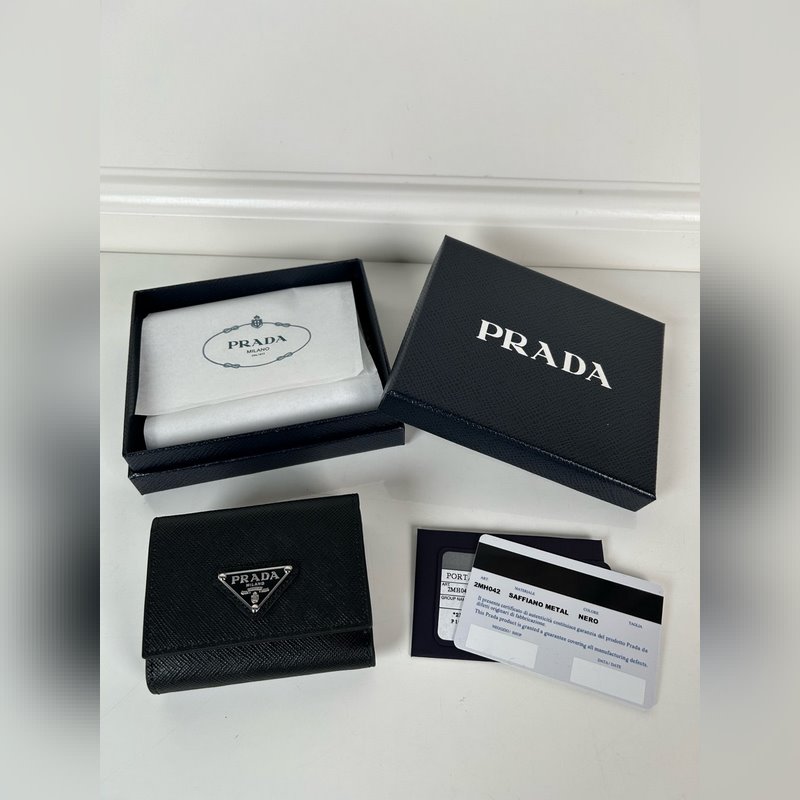 Prada 1MH042 Mini Pénztárca Fekete Saffiano 9×6,5cm Luxus Minőség
