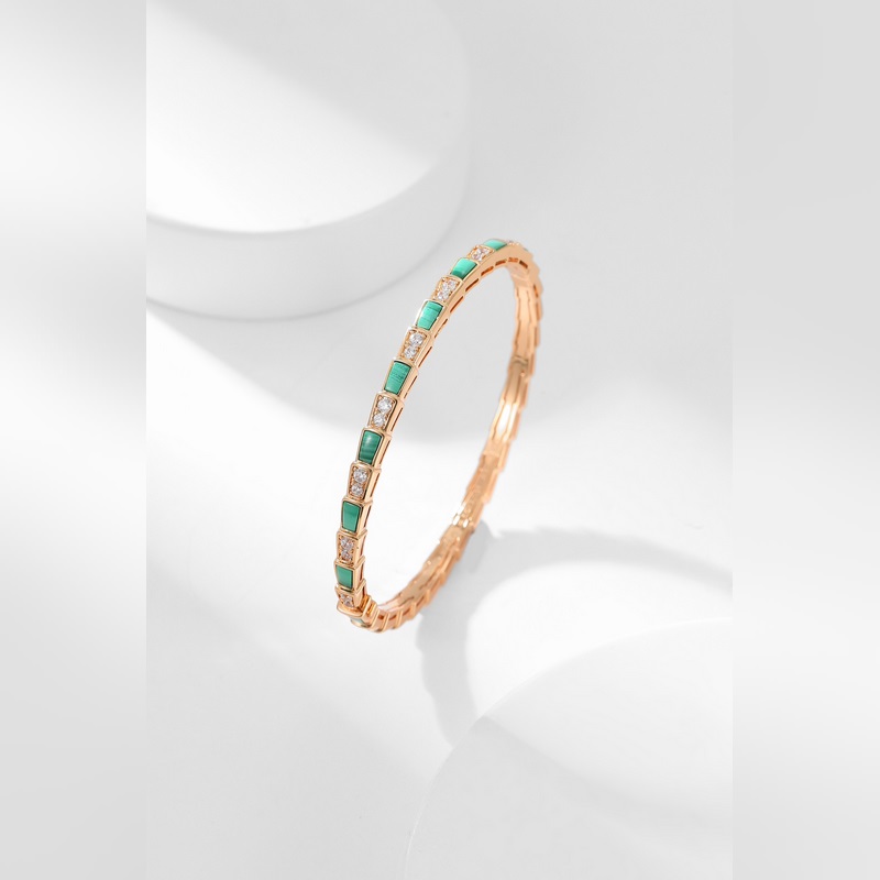 Serpenti Viper malachit és gyöngyház karkötő elegáns dizájnnal