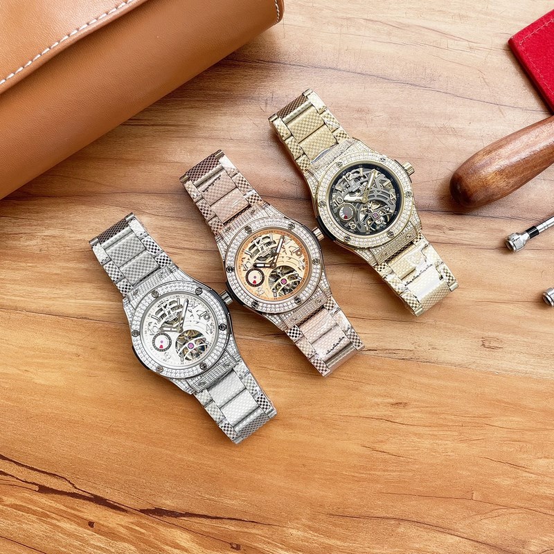 Hublot luxus gyémánt borítású férfi karórák, mechanikus replika csontváz számlappal